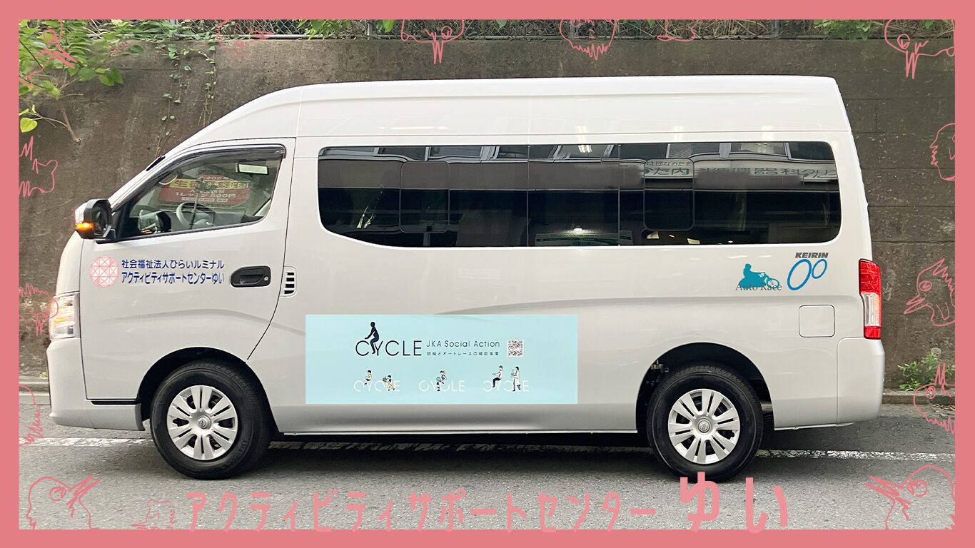 アクティビティサポートセンターゆいでは、公益財団法人JKA様の「競輪とオートレースの補助事業」により、送迎車を購入し、令和7年9月22日に納車されました。